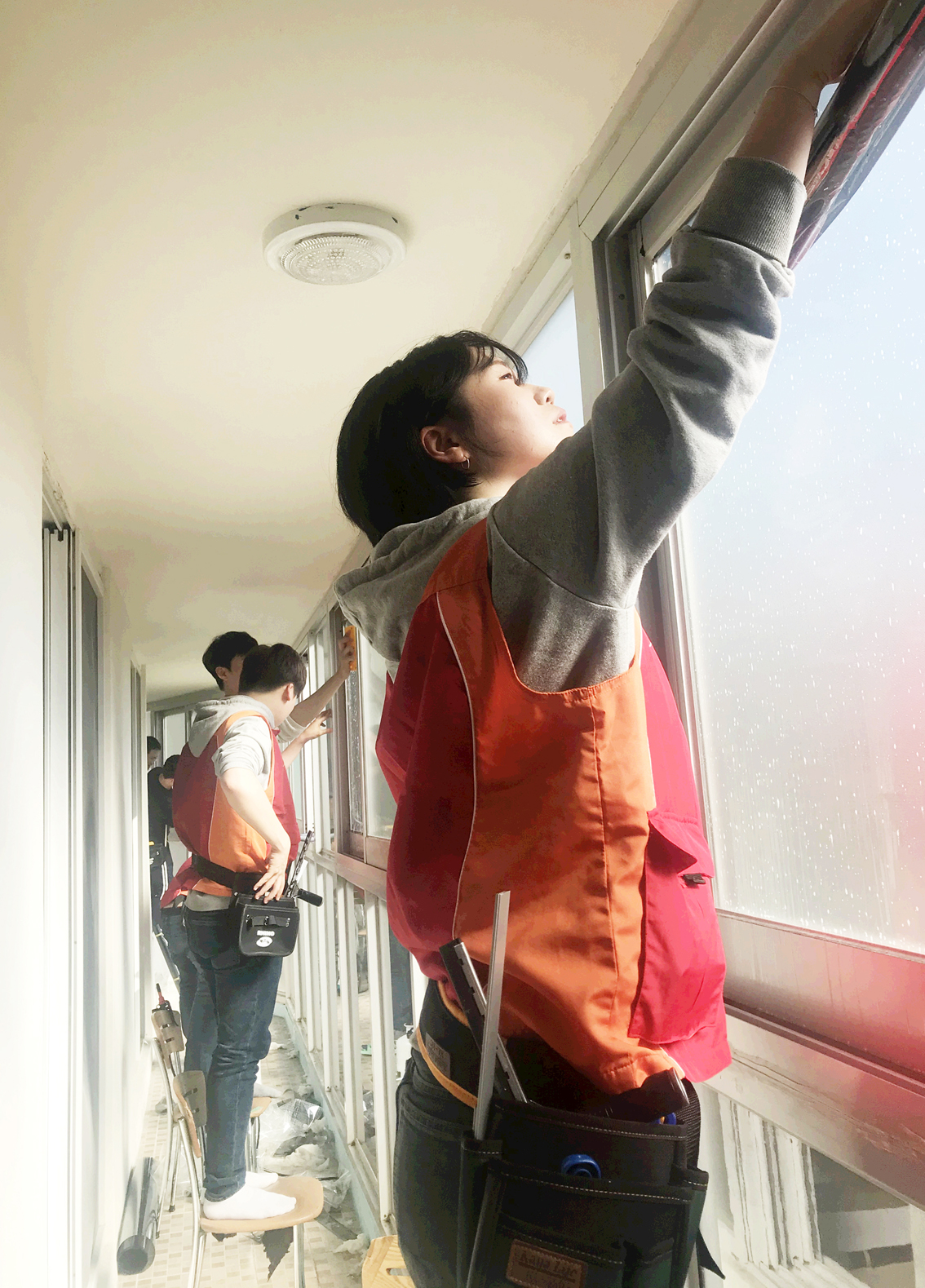 1일 SKC 구성원 30명은 수원 아동양육시설 ‘꿈을 키우는 집’에서 ‘SK 홈케어필름 DIY 키트’로 윈도우 필름을 시공했다. 이들은 전문가로부터 ‘SK 홈케어필름 DIY 키트’ 활용법 설명을 들은 뒤, 창문 유리창을 크기에 맞춰 필름을 잘라 정성스레 붙였다.