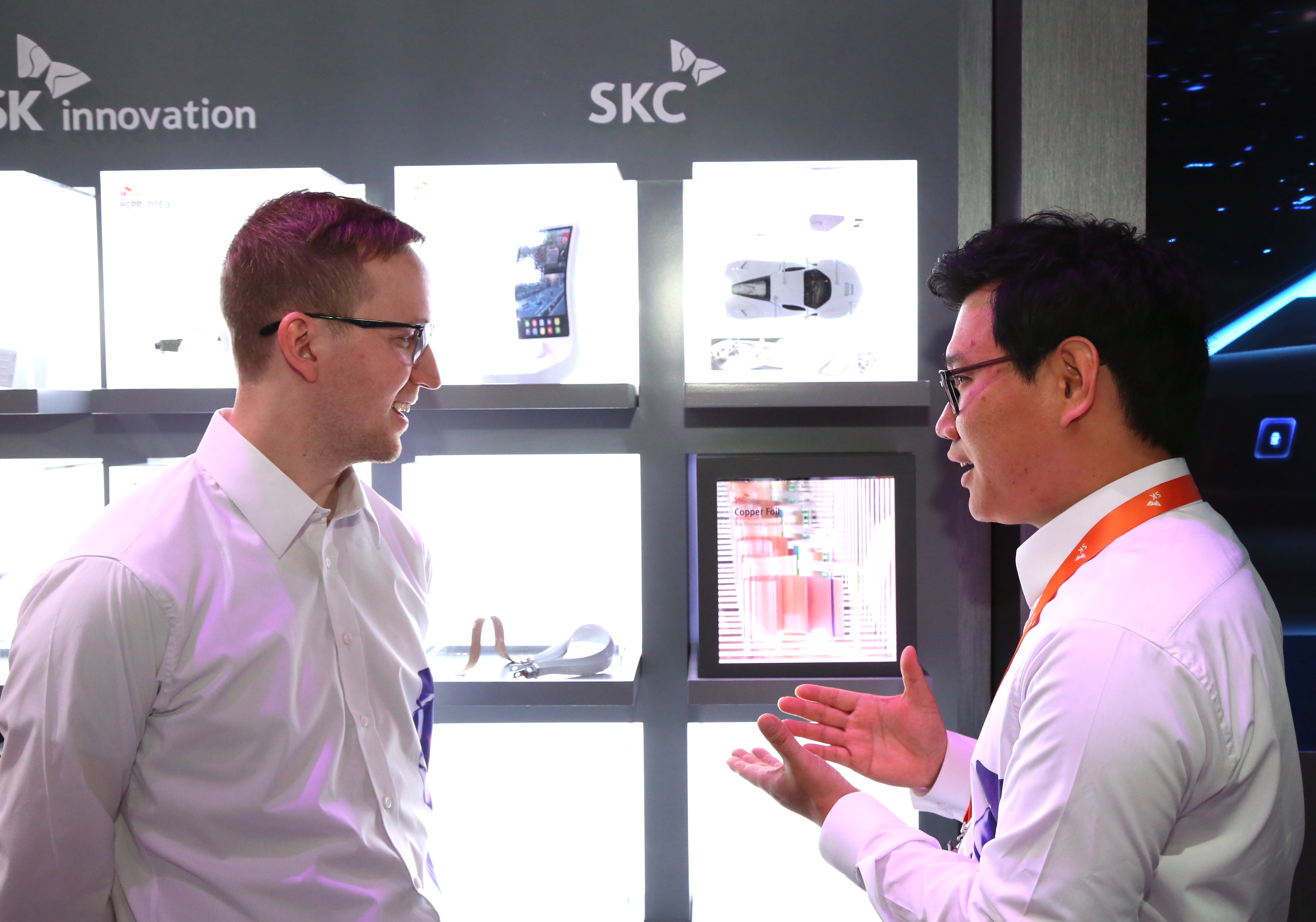 SKC는 SK그룹 주요관계사(SK 이노베이션, SK 텔레콤, SK 하이닉스)와 함께 ‘SK가 만들어갈 미래(SK Creates the Future)’를 주제로 CES 2020에 참여했다. 지난해에 이어 두 번째 참가다. ‘미래 모빌리티’의 핵심 소재인 배터리 음극재 소재 동박, 경량화 소재 PCT 필름, 미래 디스플레이 소재 투명PI 필름, 자동차 내장재용 친환경 폴리우레탄 등을 소개했다.