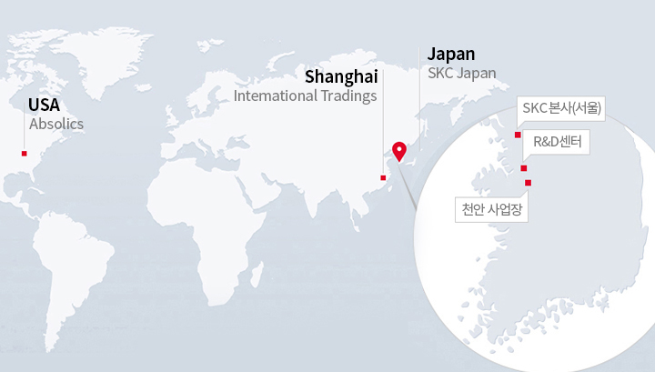 | SKC Japan (지사) | Tokyo-midtown hibiya 32F, 1 Chome-1-2 Yurakucho, Chiyoda City, Tokyo 100-0006 TEL : +81-70-3193-8653 |
